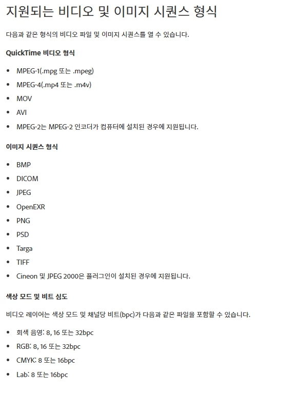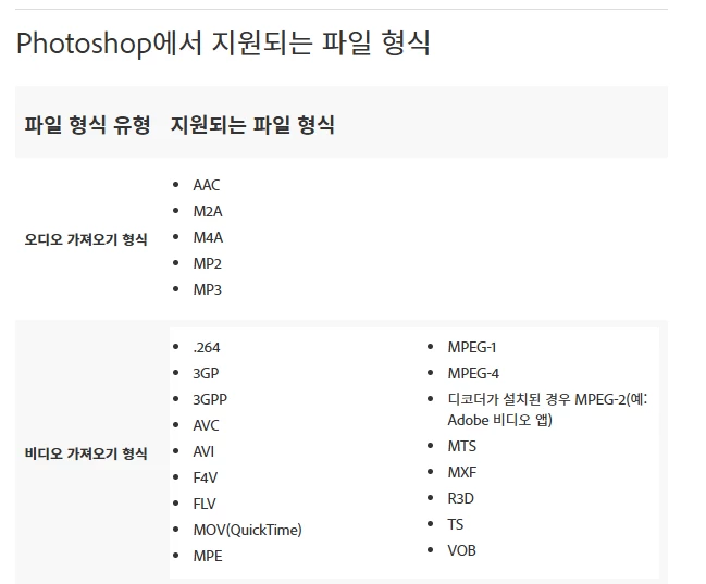 MOV에서도 사용되고 있는 코덱이 포토샵이 지원하지 않는 경우가 있습니다.