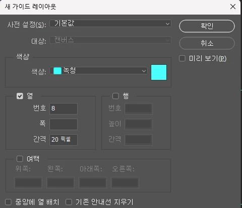 포토샵에서 새 안내선 레이아웃 대상이 변경이 안됩니다 ㅜ