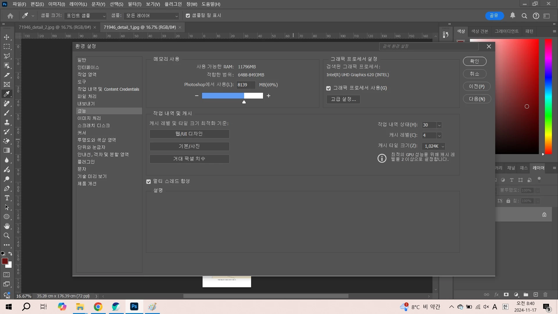 포토샵을 열고 작업을 할려고 하면 초반에 클릭도 안되서 선택도 안되는 딜레이 현상이 발생합니다.