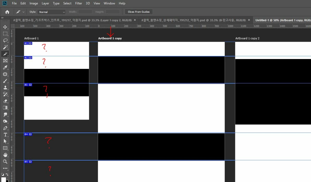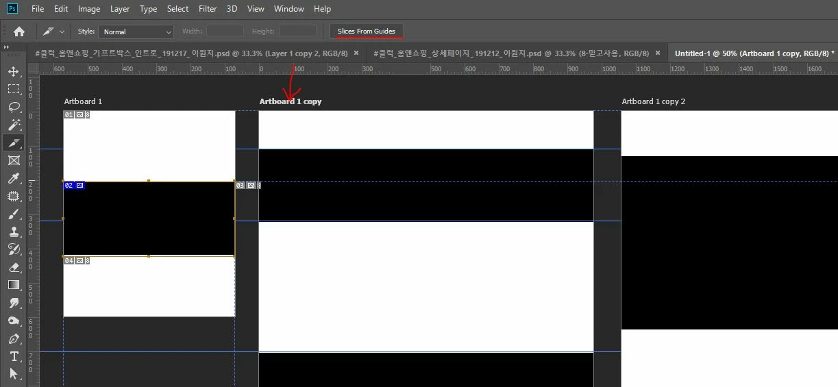 포토샵 대지별 이미지 슬라이스를 하고 싶은데 어떻게 하면 될까요?
