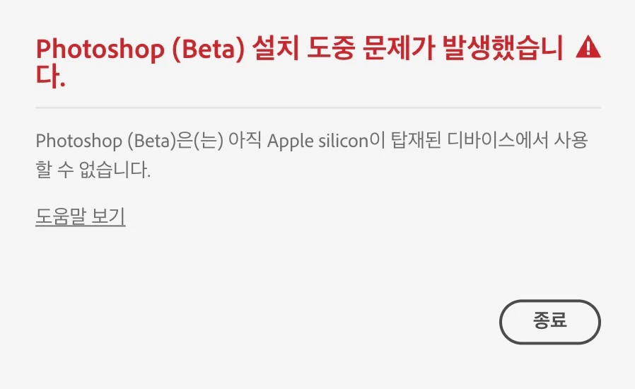 포토샵 베타 버전을 다운 받고 싶은데 제 클라우드 어플에서는 계속 안뜨더라고요. 그래서 어떤 분이 올려주신 링크 타고 다운 받으려고 하니깐 이런 오류가 뜨네요.. 이럴경우에는 베타 버전을 아예 다운 못할까요? 다운 받을 수 있는 방법 알려주시면 감사하겠습니다ㅠ