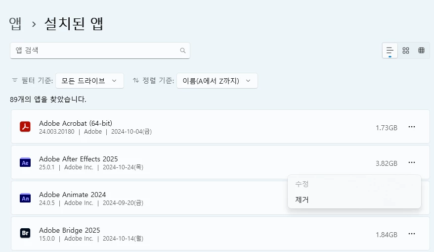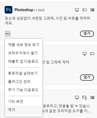 포토샵 새로운 버전 설치되서 이전 버전 제거하려고하는데