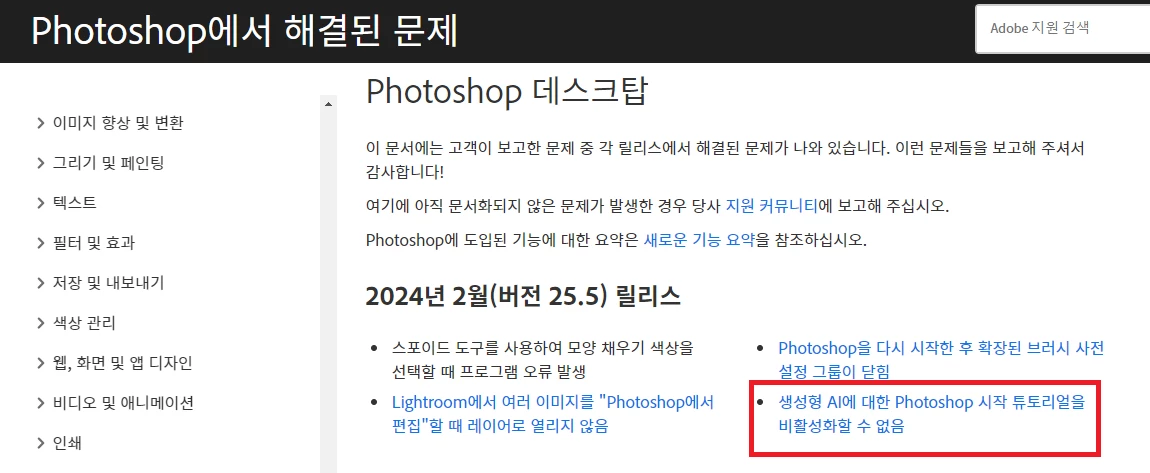 포토샵 실행 시 자동으로 켜지는 generative fill 동영상 및 소개글이 나오는 팝업창 다시는 안 뜨게 하는 방법있나요?