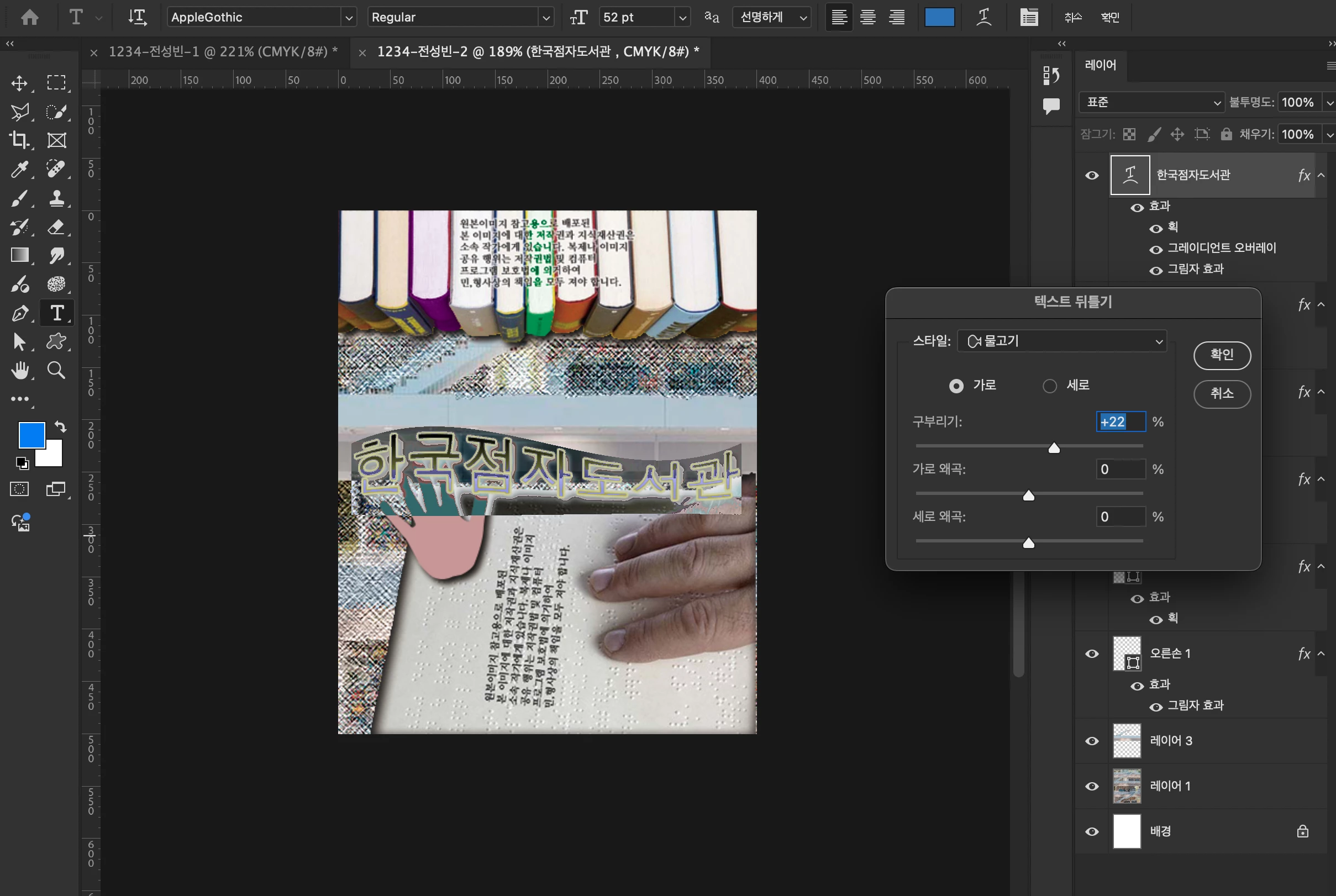 포토샵 텍스트 비틀기 오류 질문