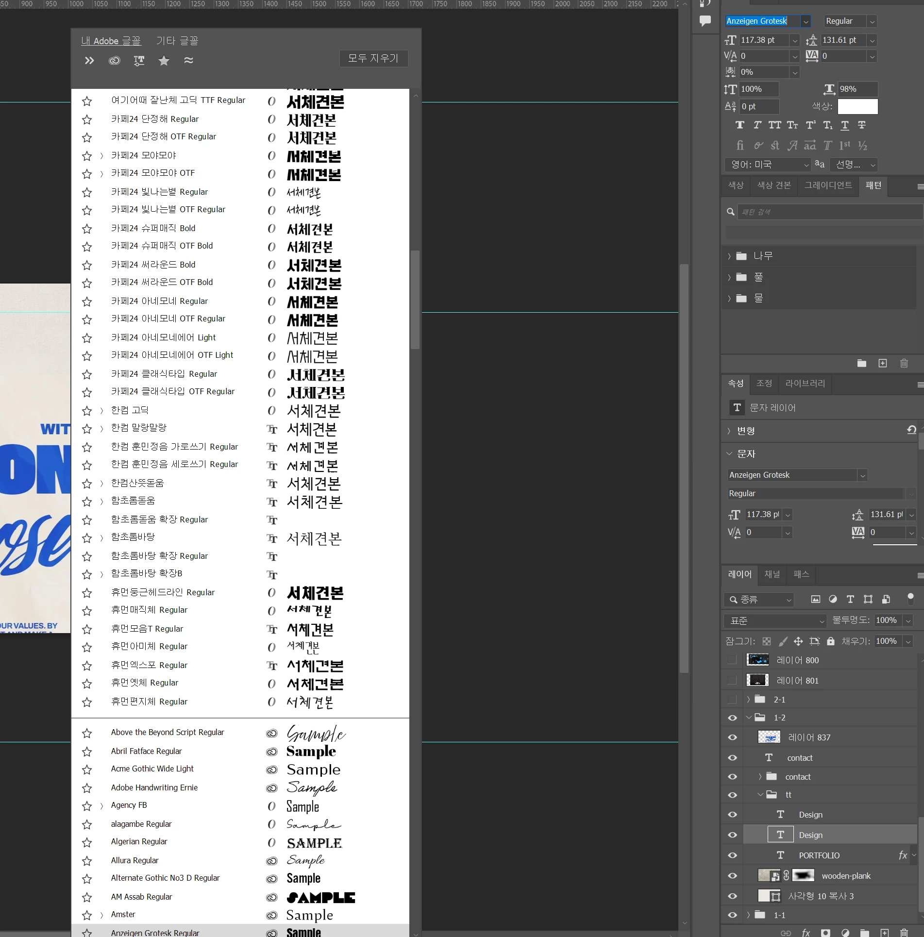 포토샵 폰트 목록 위치