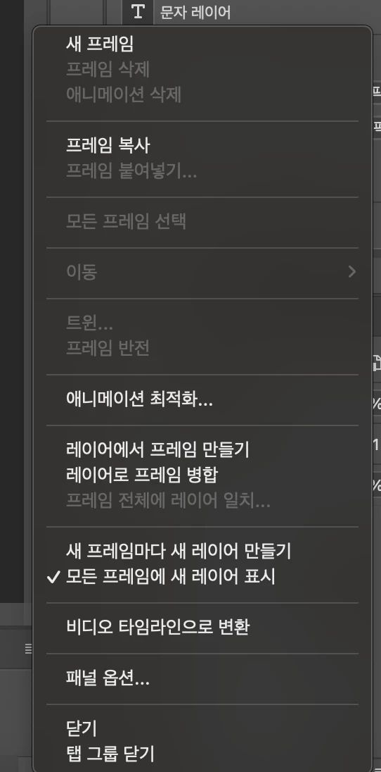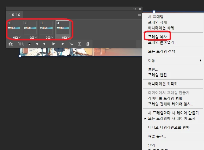 포토샵 프레임 애니메이션 프레임 붙여넣기 비활성화 (안됨)
