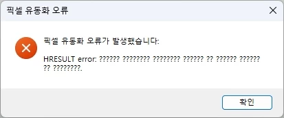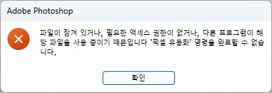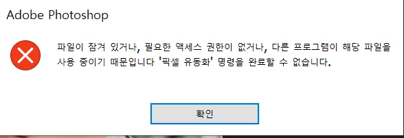 (파일이 잠겨 있거나, 필요한 엑세스 권한이 없거나, 다른 프로그램이 해당 파일을 사용 중이기 때문입니다. '픽셀 유동화' 명령을 완료할 수 없습니다.)