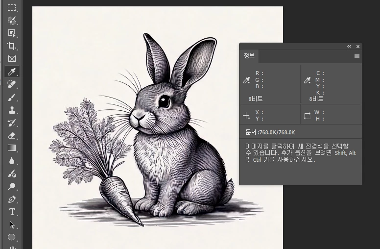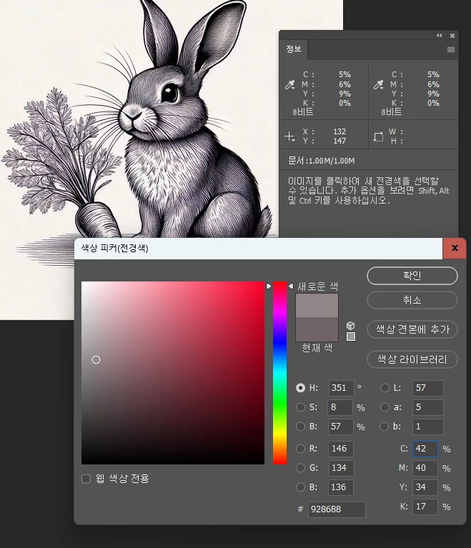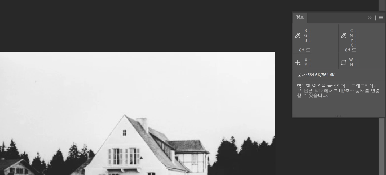 흑백 이미지를 열었으나 스포이드를 통해 CMYK 수치 값을 확인했을 때 0% 수치로 나타나지 않고 스포이드 커서를 움직일 때마다 수치가 시시각각 변하는 문제가 발생하고 있습니다. 지금 나타나는 현상이 정상적인 현상인지 확인 요청드립니다.
