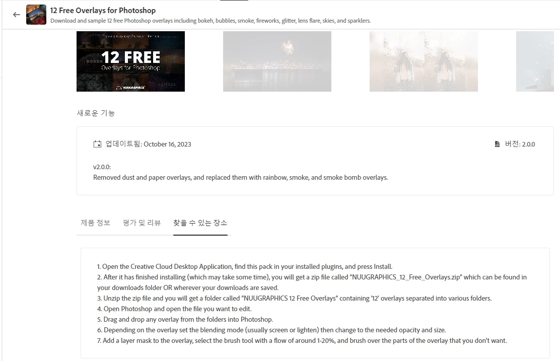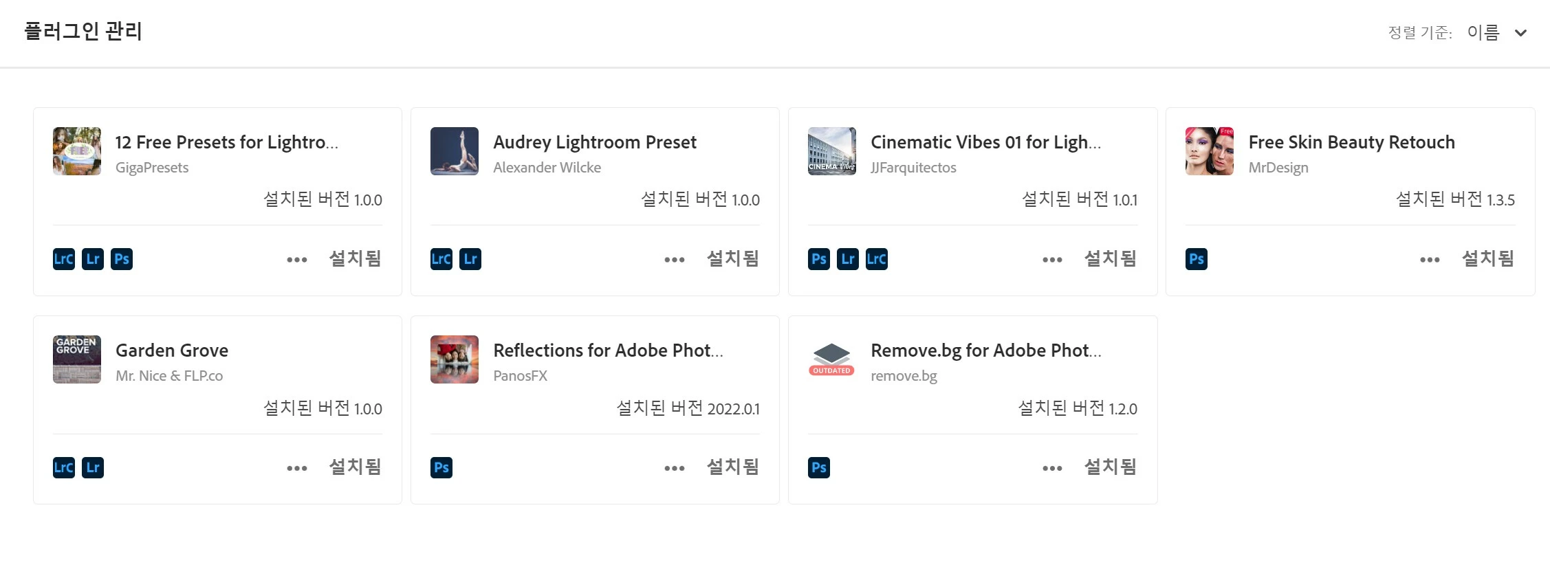 어도비 클라우드 마켓에서 확인되는 플러그인들은 지원하는 버전이 어느정도 표기가 되어 있는데 외부 플러그인의 경우는 해당 플러그인 제공 홈페이지나 소개페이지를 확인해서 지원버전도 함께 확인해줘야합니다.