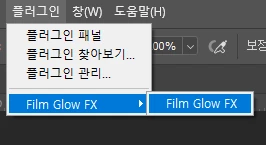 필름 글로우 FX의 경우는 플러그인 > 해당 플러그인을 열어서 사용이 가능합니다