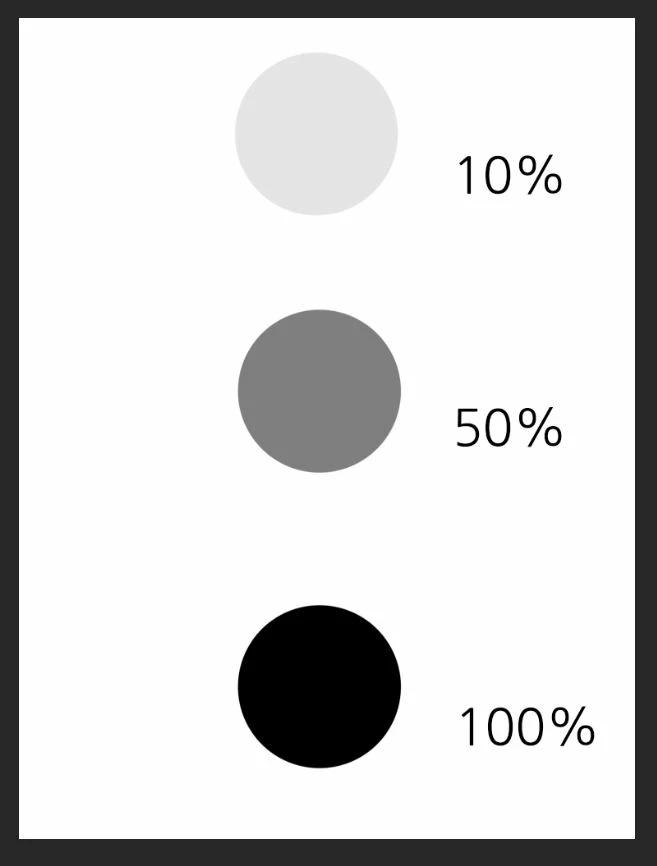 검정색에 투명도를 낮추게 되면 회색을 거치고 결국에는 하얀색이 됩니다.