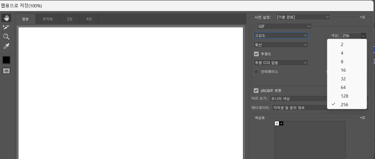 웹용으로 GIF 저장할때 화질도 이상해지고 색감이 형광빛으로 이상하게 저장됩니다.