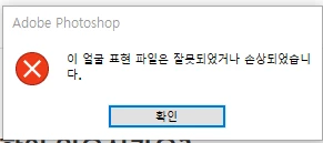 포토샵 프로그램을 실행하면 이런 경고문구가 뜨고, 확인을 눌러주지 않으면 실행이 안됩니다.