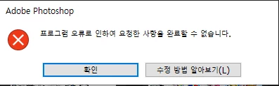 '프로그램 오류로 인하여 요청한 사항을 완료할 수 없습니다'