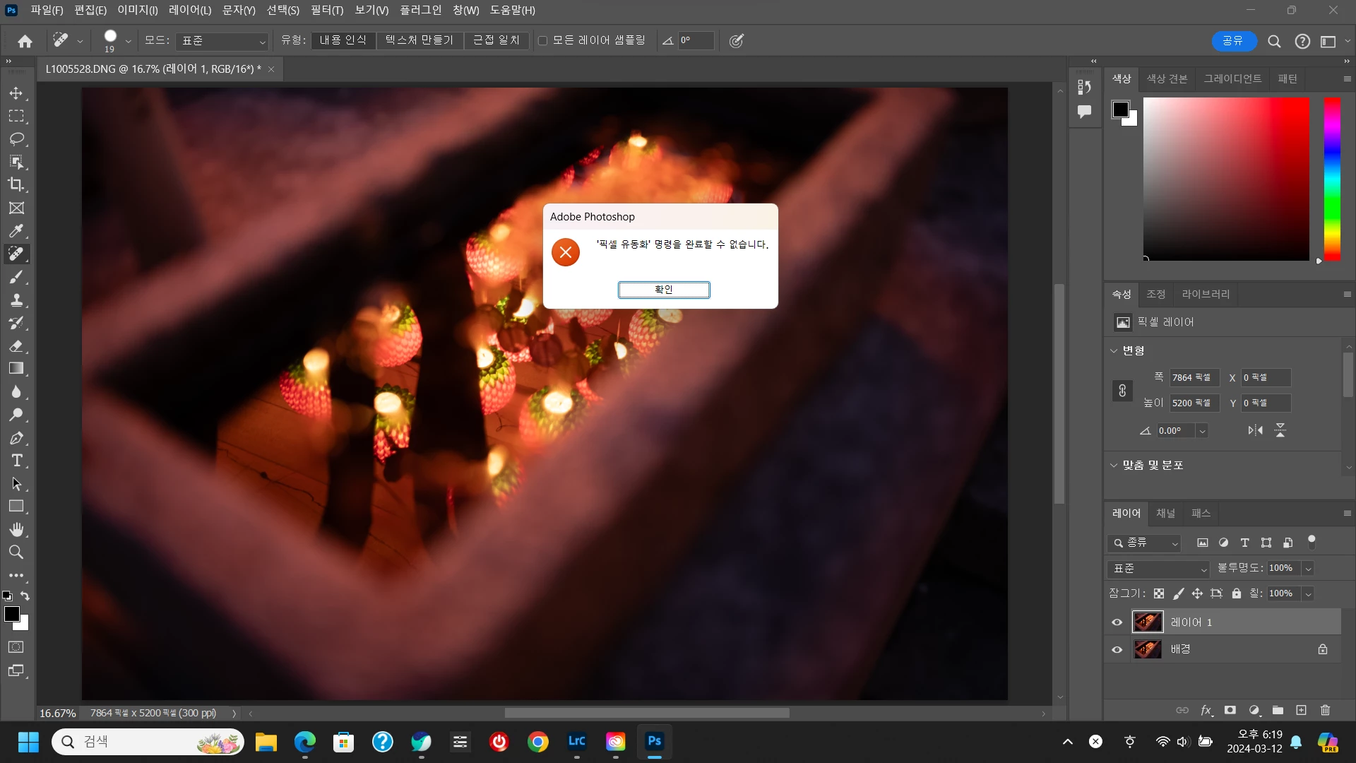 픽셀유동화 명령을 완료 할 수 없습니다.