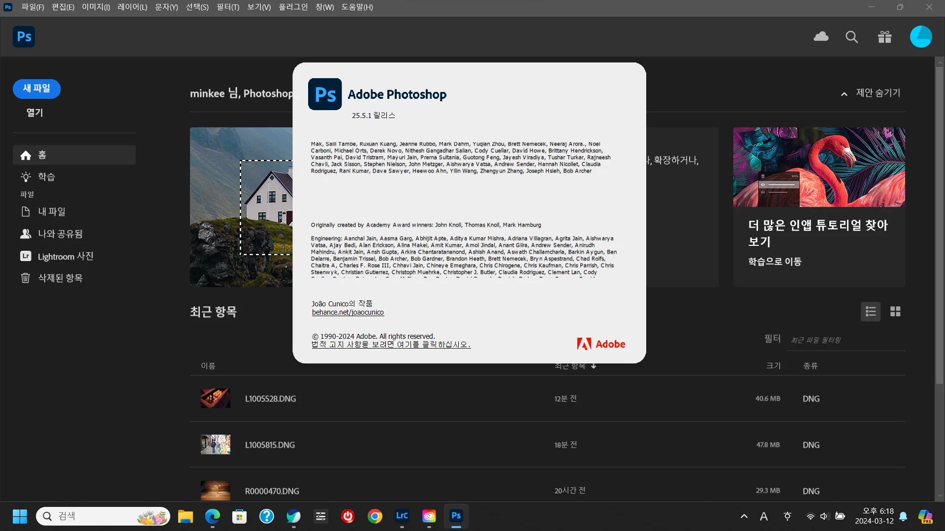 포토샵 최신 버전이고 구독으로 사용한지 1년이 넘었는데 이런 적이 없었습니다.