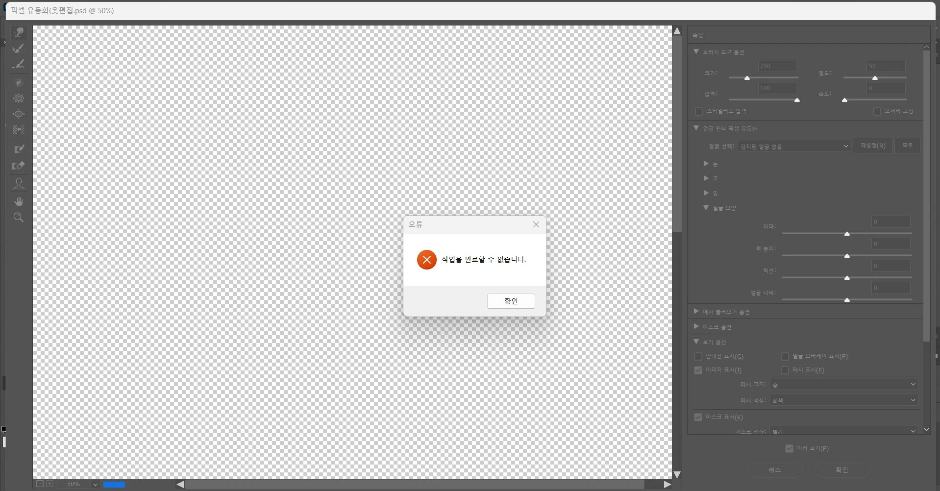 픽셀유동화 사용시에 오류가 계속 뜹니다