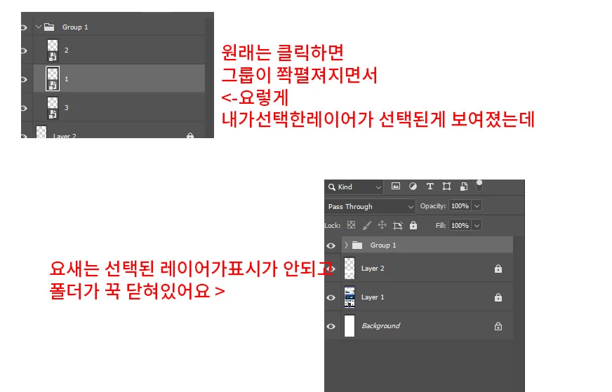 Ctrl 키로 레이어를 선택했을 때 그룹이 펼쳐집니다.
