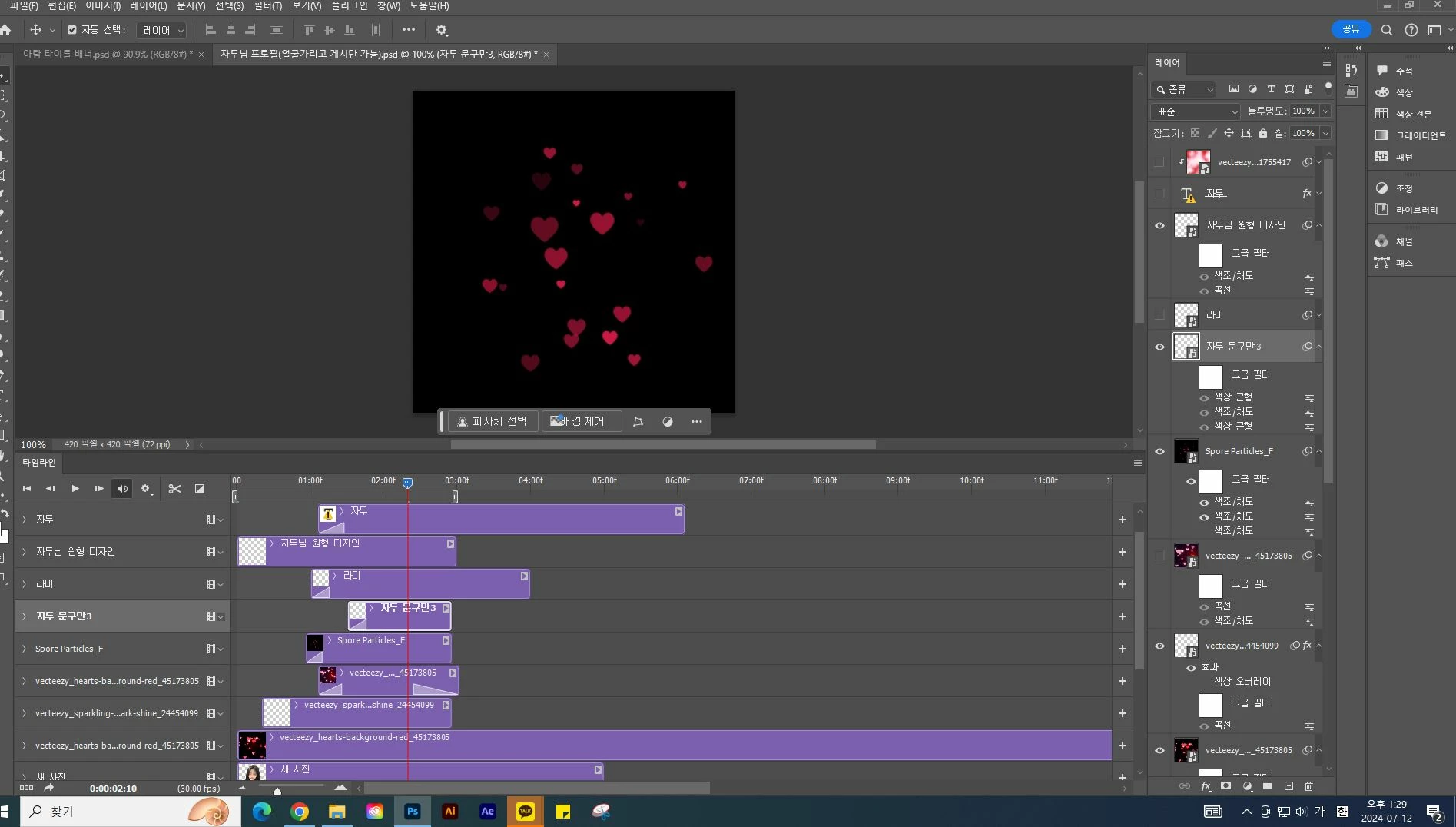 겉 부분 테두리도 에프터이펙트에서 작업하고 mp4 파일로 저장 후
