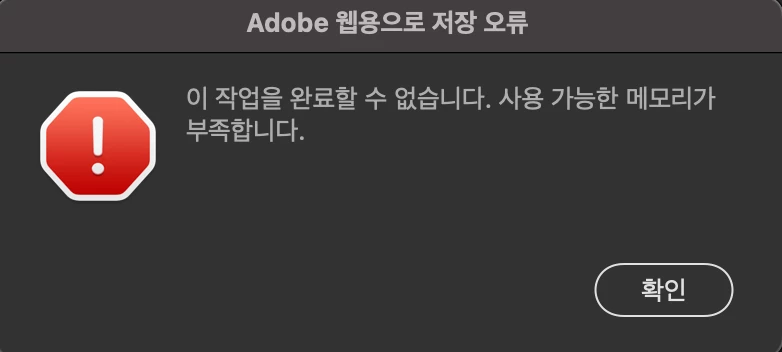 gif 만들고 있었는데 웹용으로 저장하던 도중 저 화면이 뜨더니 사용 가능한 메모리가 부족하다고 뜨는데 어떻게 해결해야될까요...