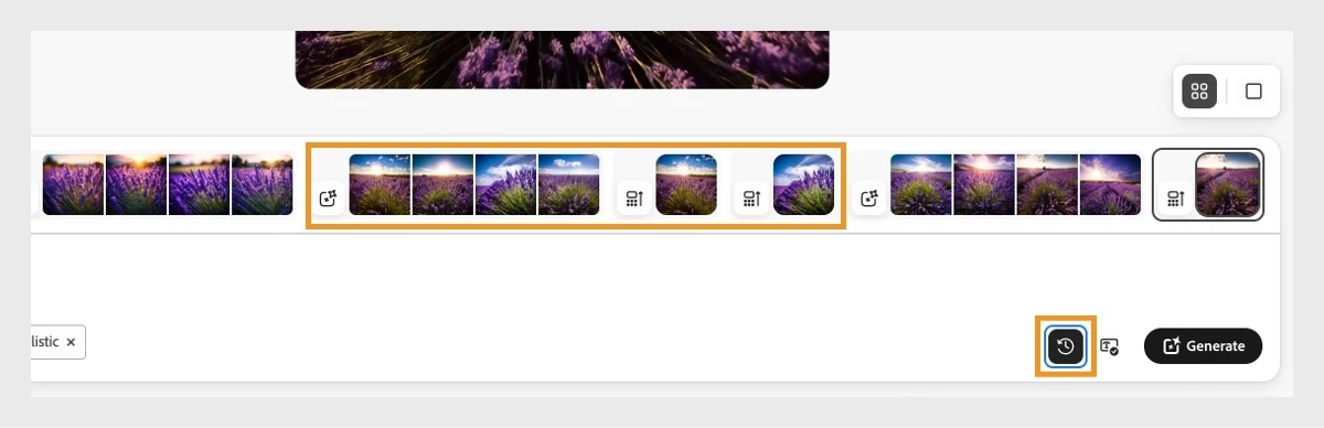 생성 버튼 옆에 있는 History 아이콘을 클릭하여 History 스트립 에서,