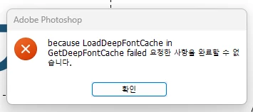 because LoadDeepFontCache in GetDeepFontCache failed 요청한 사항을 완료할 수 없습니다.