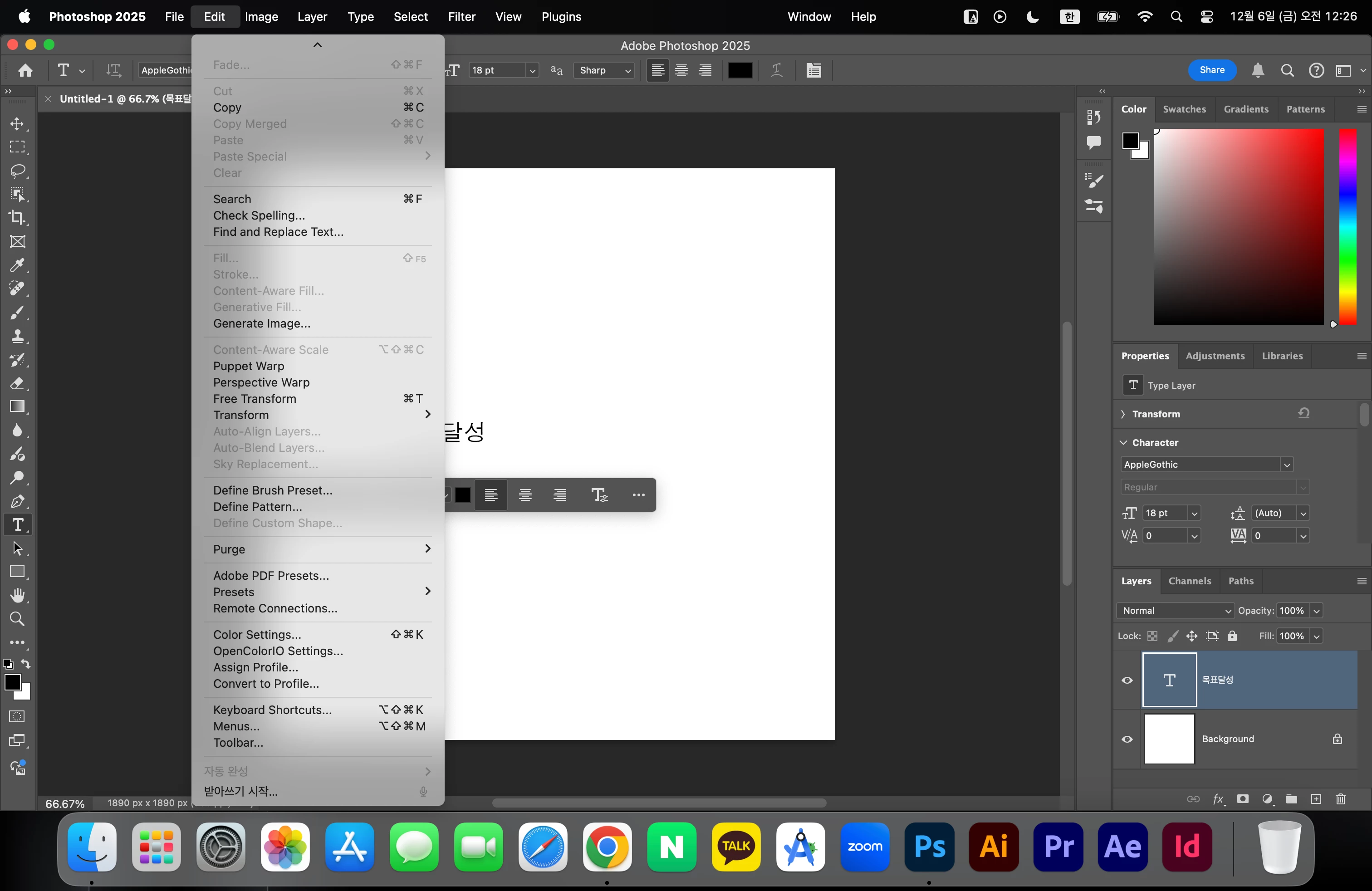 폰트를 한국어로 표시할려고 Edit에서 Preferences 메뉴를 찾고 있는데,