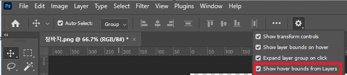 그런데 어느 순간부터 move툴로 선택해도 해당 레이어가 레이어창에 바로 안뜨더라구요.