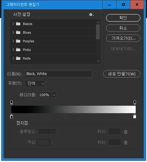4. 그레이디언트 편집기로 원하는 작업을 진행하세요
