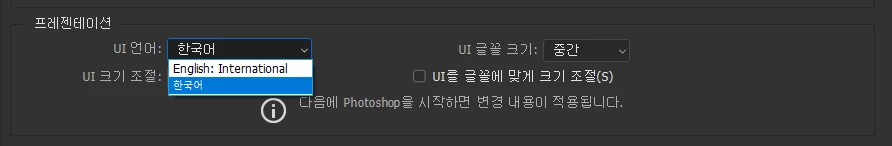 포토샵의 언어를 변경하여 사용하고 싶어요