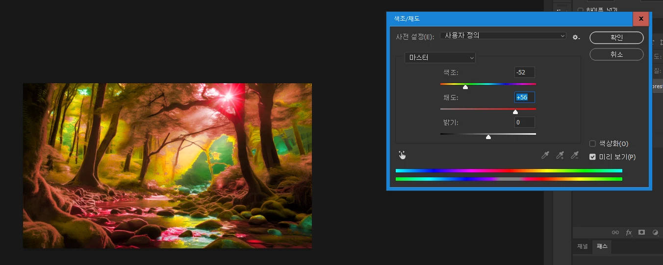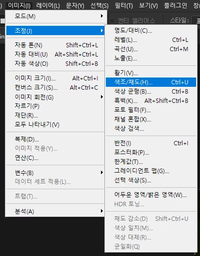 * 색조/채도 메뉴를 통한 색조 변경