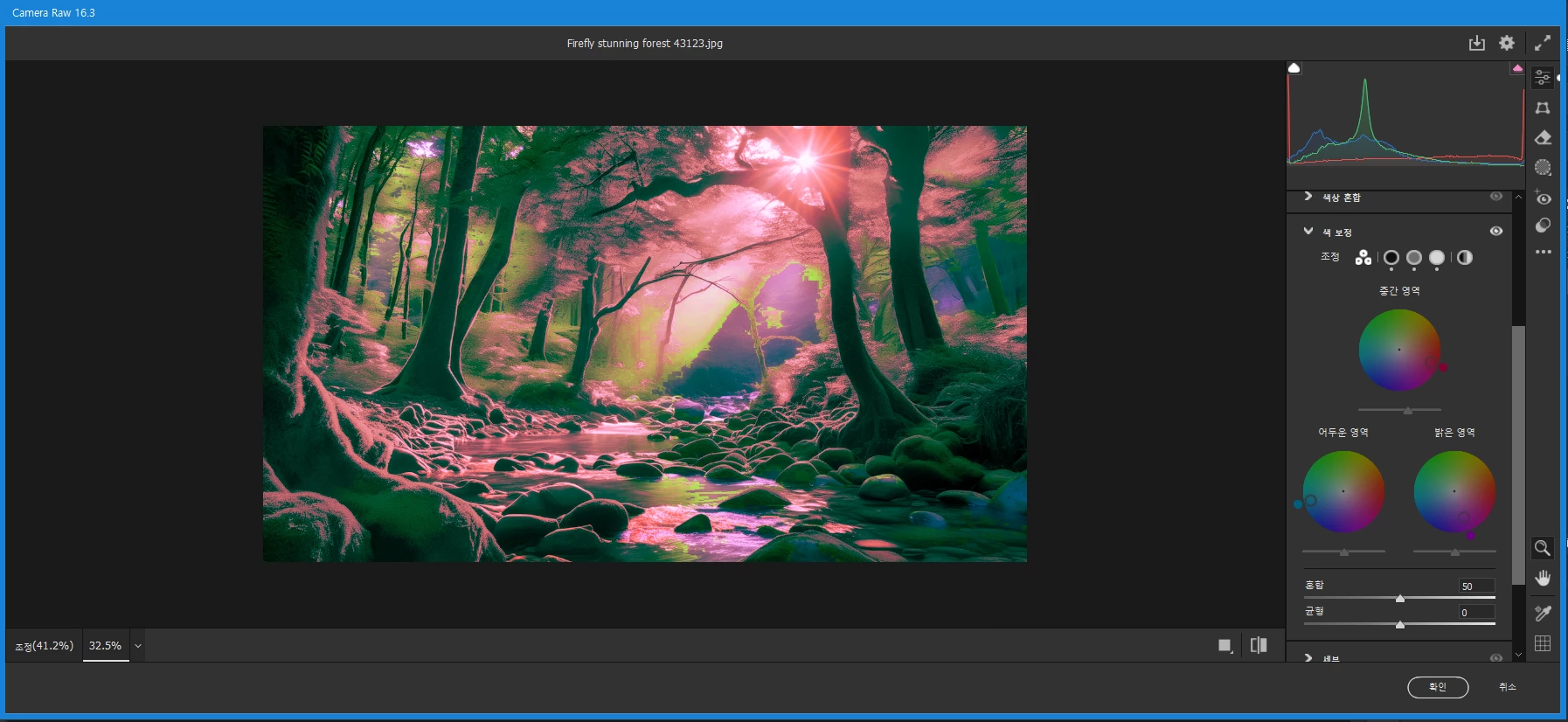 카메라 로우필터의 색상혼합, 색 보정 등의 메뉴를 통해 톤조정이 가능합니다.