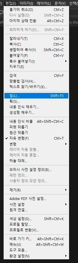 (2) 편집 > 칠을 클릭합니다.