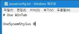 UseSysemStylus 0 작성 후 psuserconfig.txt로 저장하여