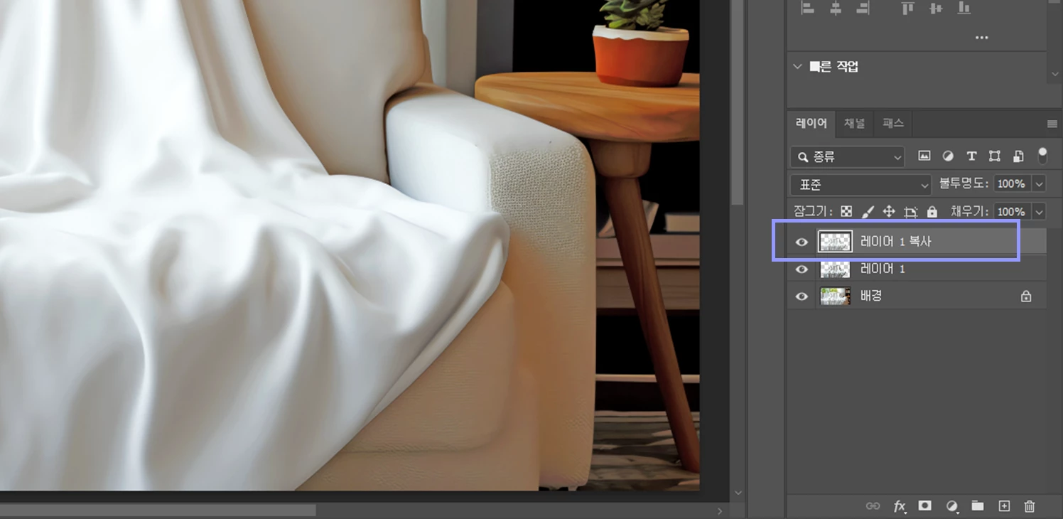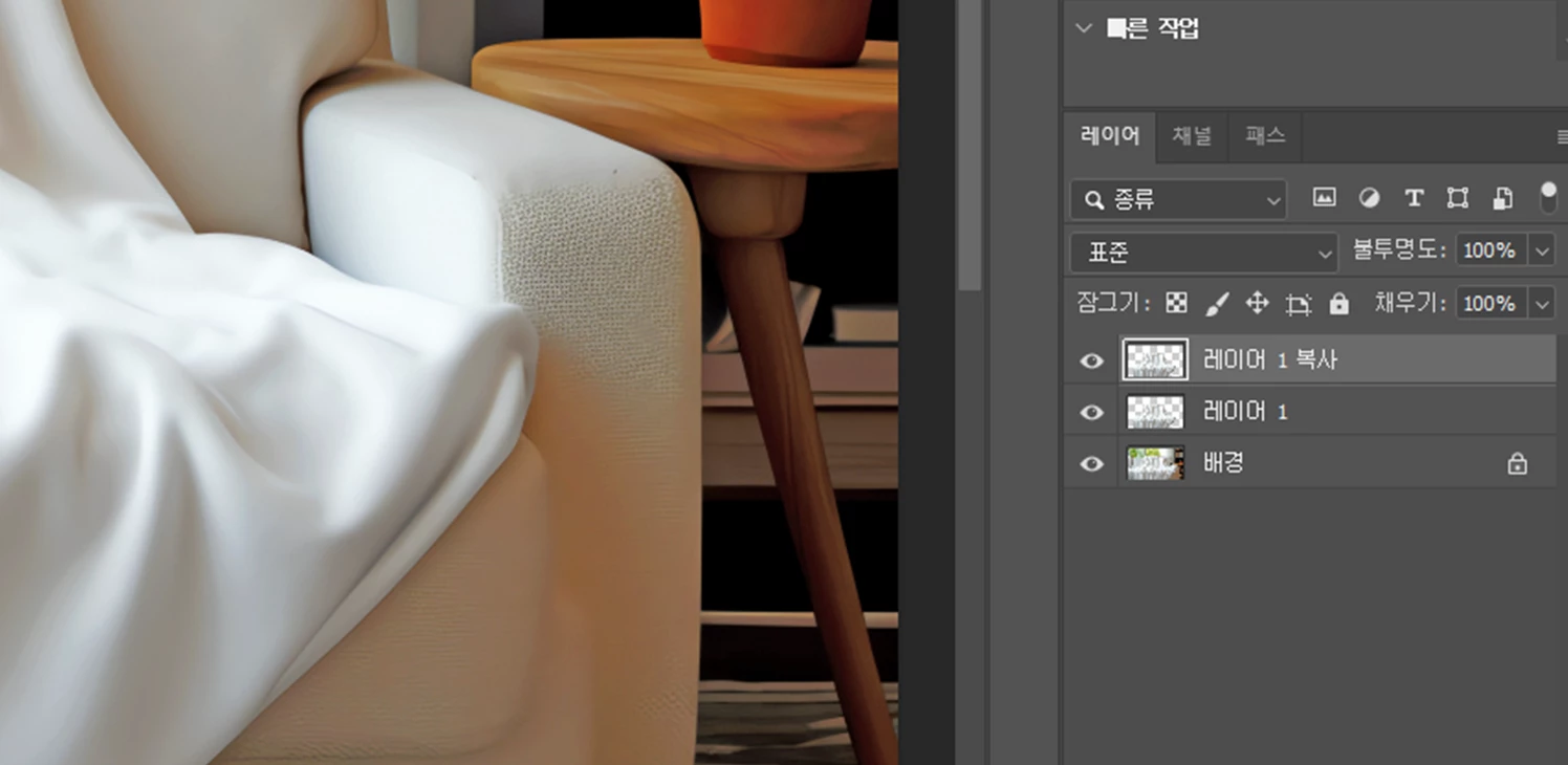 이후 Ctrl + J를 두 번 눌러 담요만 있는 레이어를 2개 복사하겠습니다!