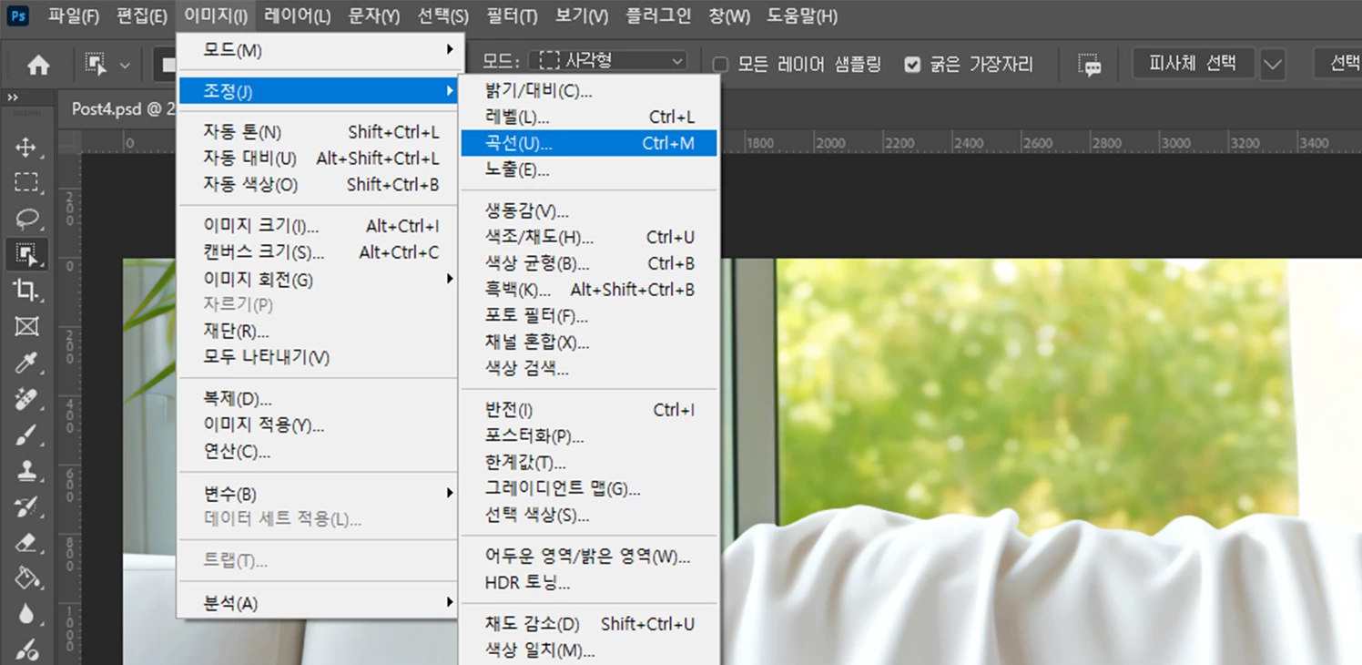 [ 이미지 ] > [ 조정 ] > [ 곡선 ] 메뉴로 진입해주세요!