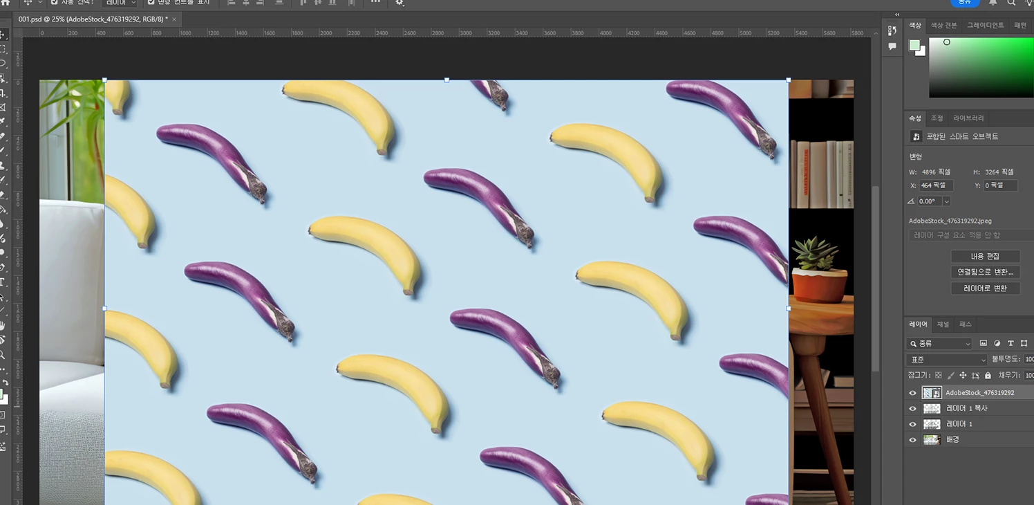 3. 스마트 오브젝트 기능을 통해 패턴을 입히고, 수정