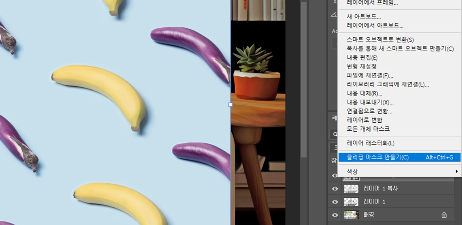 불러온 패턴 레이어는 우클릭하여 [ 클리핑 마스크 만들기 ] 처리를 진행해주세요!