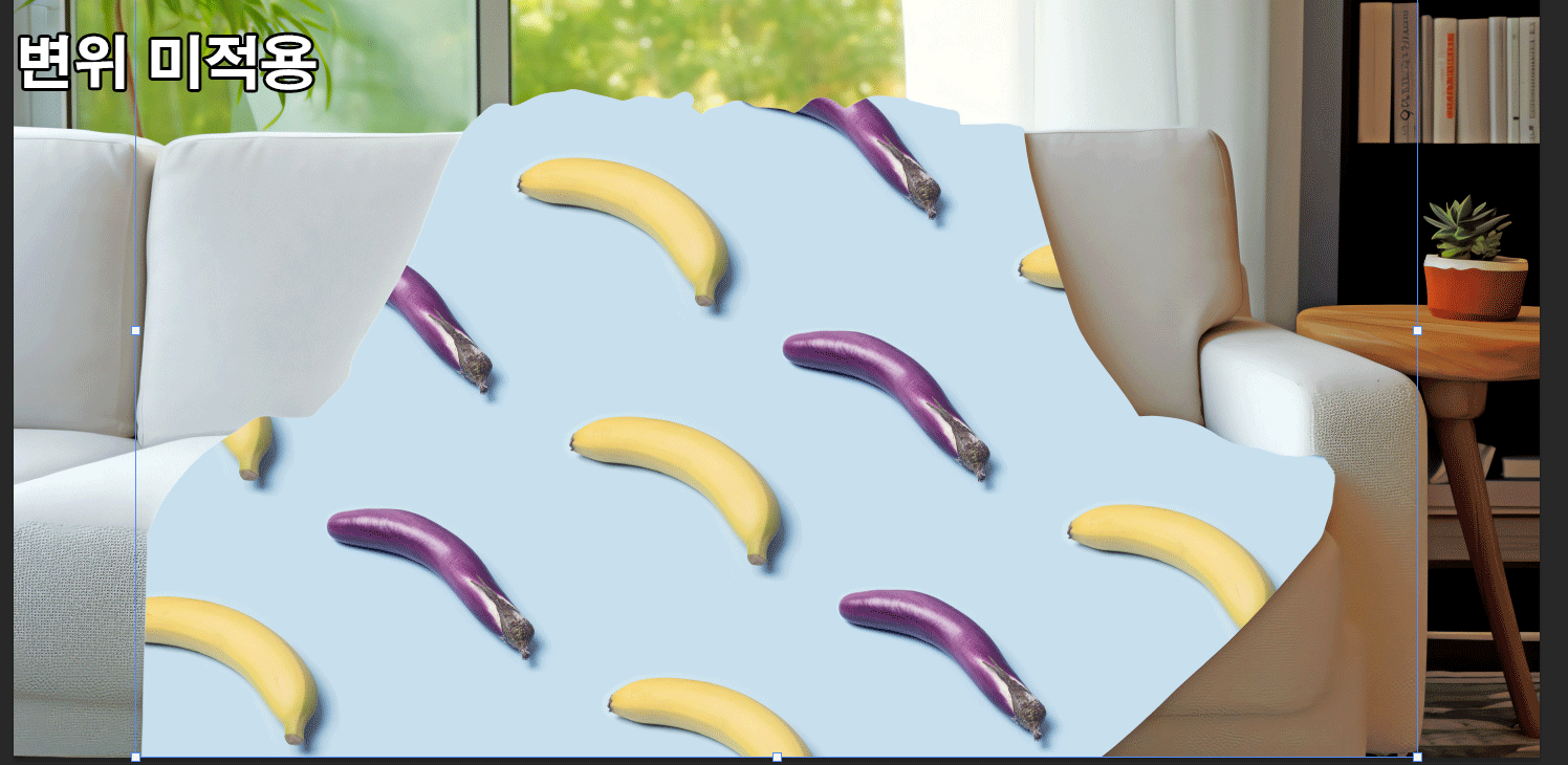담요 모양에 맞게 패턴이 일그러졌습니다!