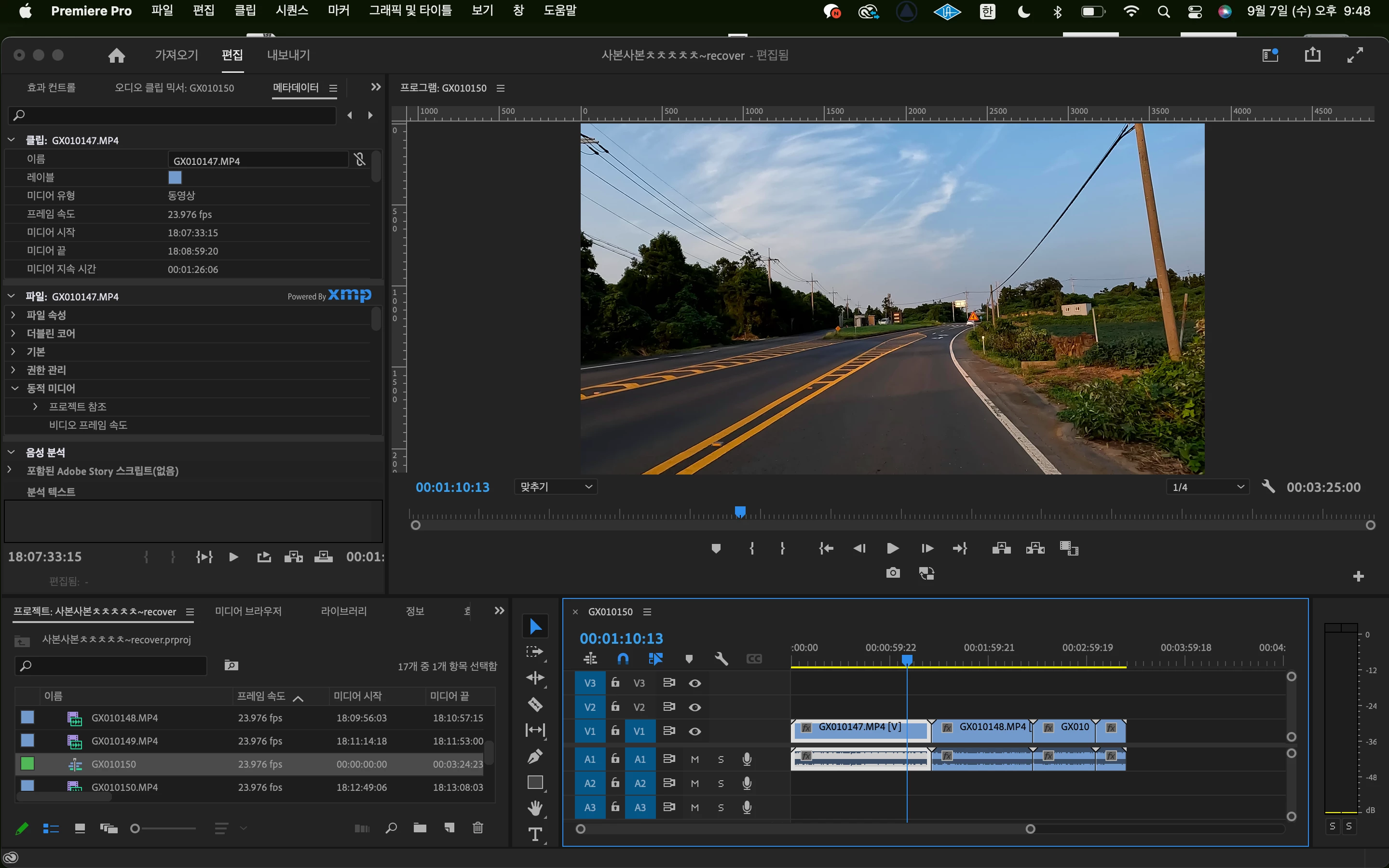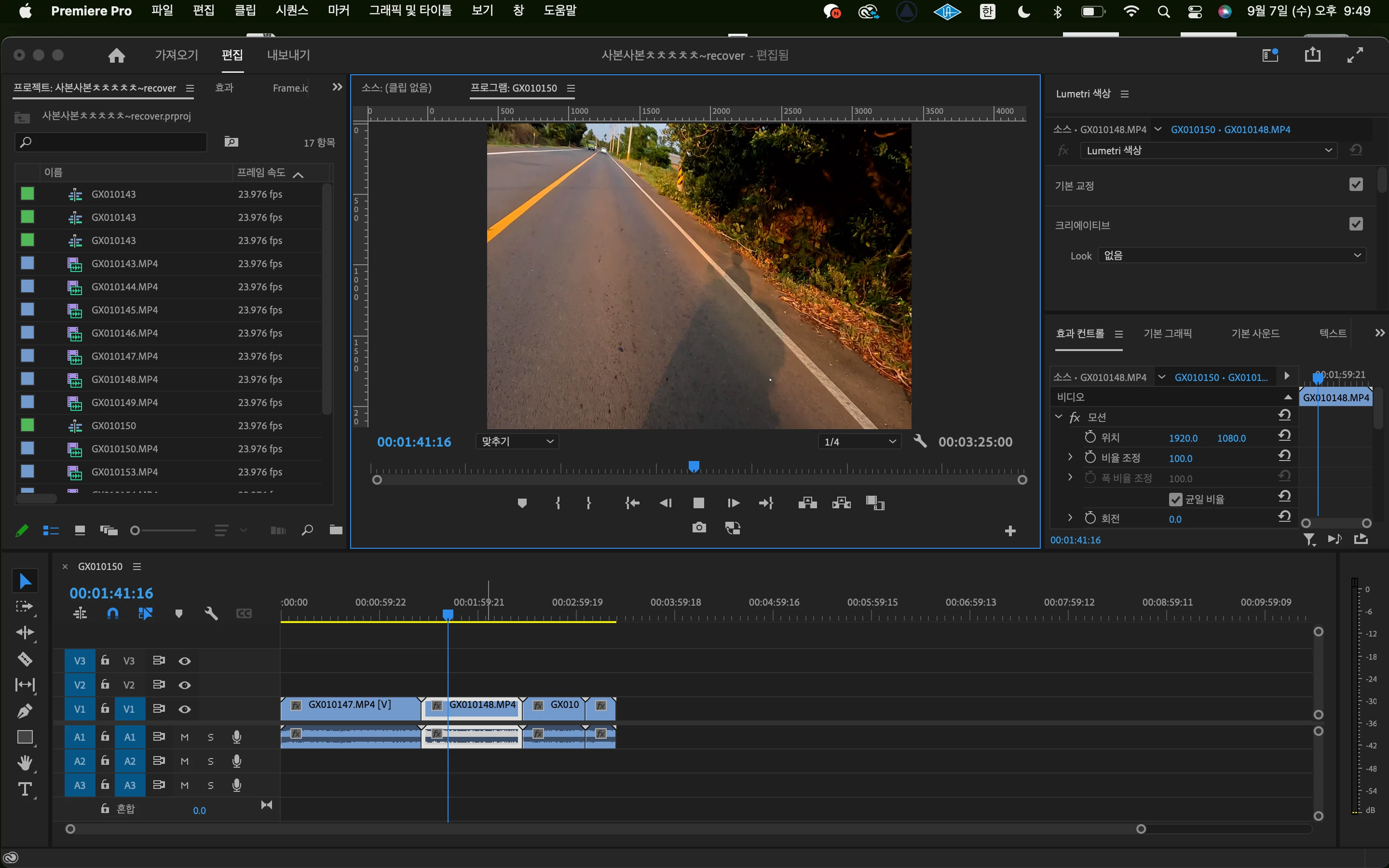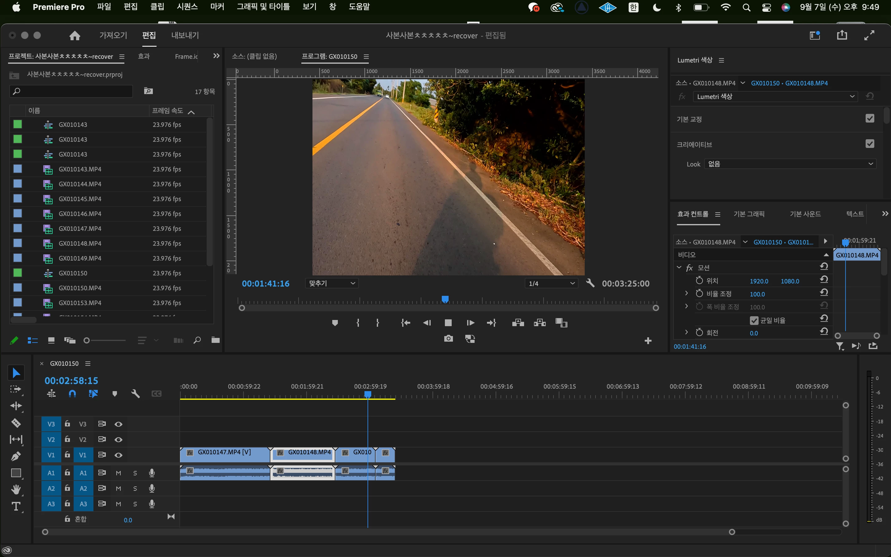 원래 dslr카메라 영상 사용했을때는 아무 문제가 없었는데 고프로10으로 넘어와서 이러네요
