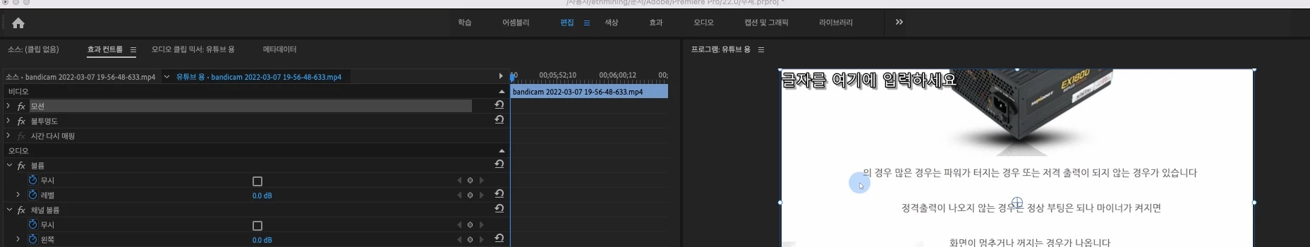 편집을 하고나니 왼쪽 상단에 (글자를 여기에 입력하세요 )