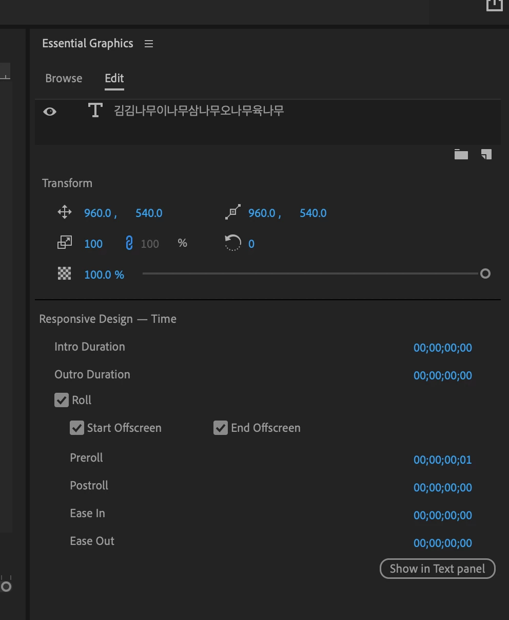 3 그래픽으로 변경되었다면 Essential Graphics 탭에서 Roll이 생긴것을 볼 수 있습니다.