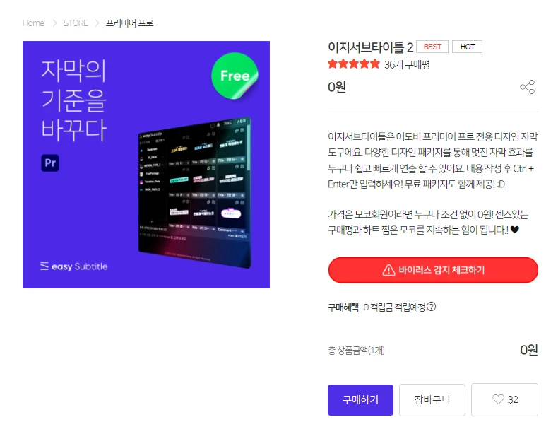 구매하기 버튼을 눌러주세요! ( 무료이기에 돈은 나가지 않습니다!! )