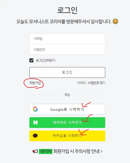 모셔니스트 코리아 해당 링크로 접속해주세요! 그러면 아래와 같은 화면이 뜰겁니다!