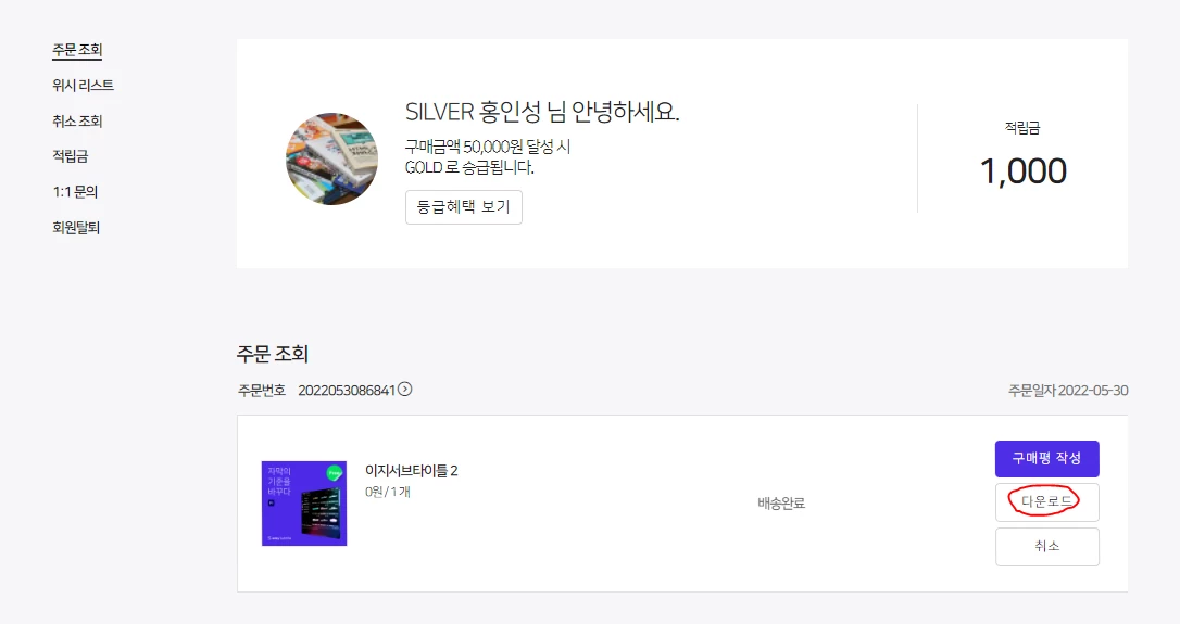 짜잔! 이렇게 제품 구매가 완료되었어요!