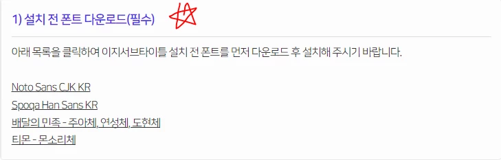 그리고 아까 위 링크로 다시 가셔서 조금 내려보시면 이렇게 폰트를 다운로드 하라 나와요!