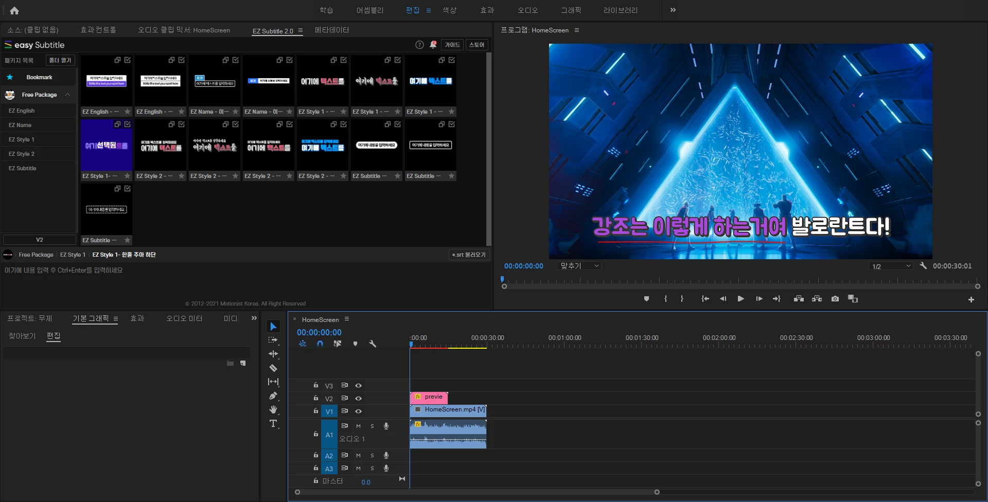 [꿀팁] 프리미어 프로 자막 플러그인! EZsubtitle!