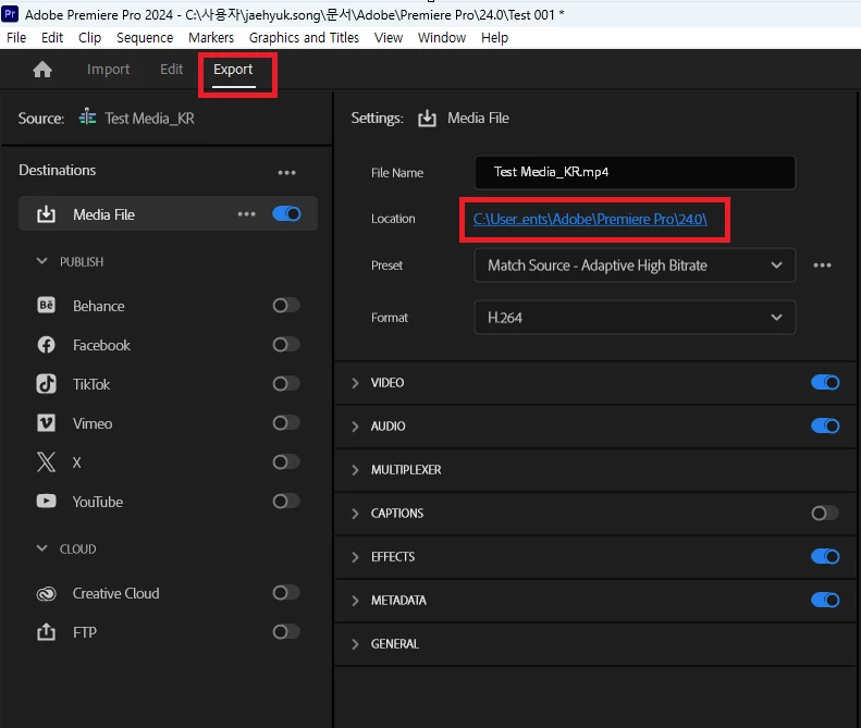 기본 경로로 내보내기가 되지 않았다면, 아래의 방법을 확인해보세요.