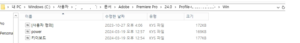 데스크탑 프리미어프로 단축키 설정을 노트북 프리미어프로에 적용하고 싶어 설정을 내보내고 폴더에 적용을 시켜보아도 노트북 프리미어프로의 단축키 프리셋에서 넣은 파일의 설정이 표시되지 않습니다.