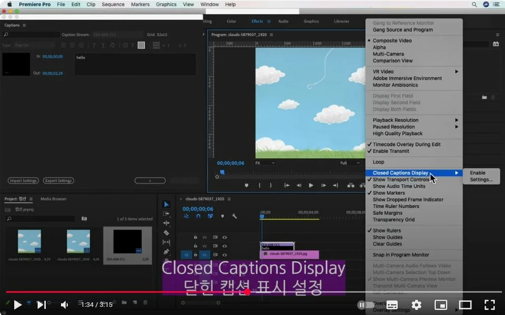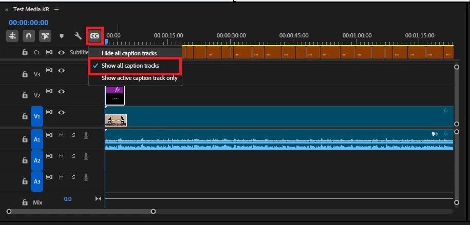 닫힌 자막 트랙 숨기기를 말씀하시는 거라면, 해당 기능을 확인해보세요.